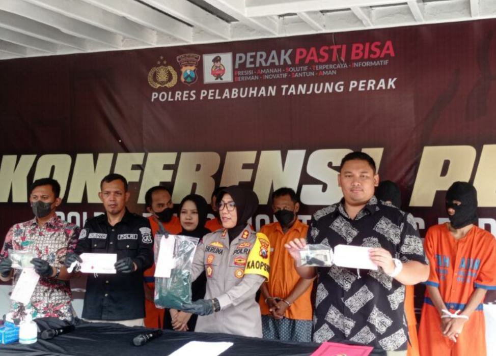 “Dari enam pelaku yang kita amankan yakni, MPT, MR (34) FS, (20) AGS, (45) SL ARFN (38) dan AP (43) semuanya merupakan warga Surabaya,” kata Kepala Kepolisian Polres Pelabuhan Tanjung Perak Surabaya AKBP Herlina didampingi Kasi Humas Iptu Suroto di Mapolres, Jumat (24/03/2023).