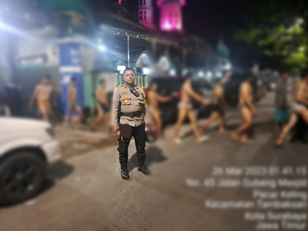 Kapolsek Tambaksari Kompol Ari Bayuaji.,S.E.,S.I.K.,M.Si bersama 3 Pilar Tambaksari melaksanakan patroli malam untuk mencegah terjadinya aksi kejahatan dijalanan seperti balap liar,Kenakalan Remaja,Tawuran Antar Gengster dan Gangguan Kamtibmas di wilayah hukum Polsek Tambaksari.