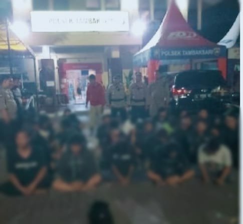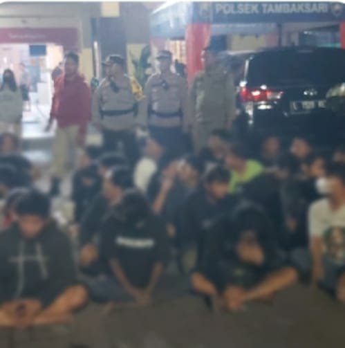 Surabaya,Surya Mentari Polsek Tambaksari – Anggota Polsek Tambaksari bersama 3 Pilar Tambaksari menjaring sebanyak 32 Remaja yang melaksanakan Minum-Minuman Keras di Makam Gubeng Masjid,Minggu dini hari (26/03/2023).