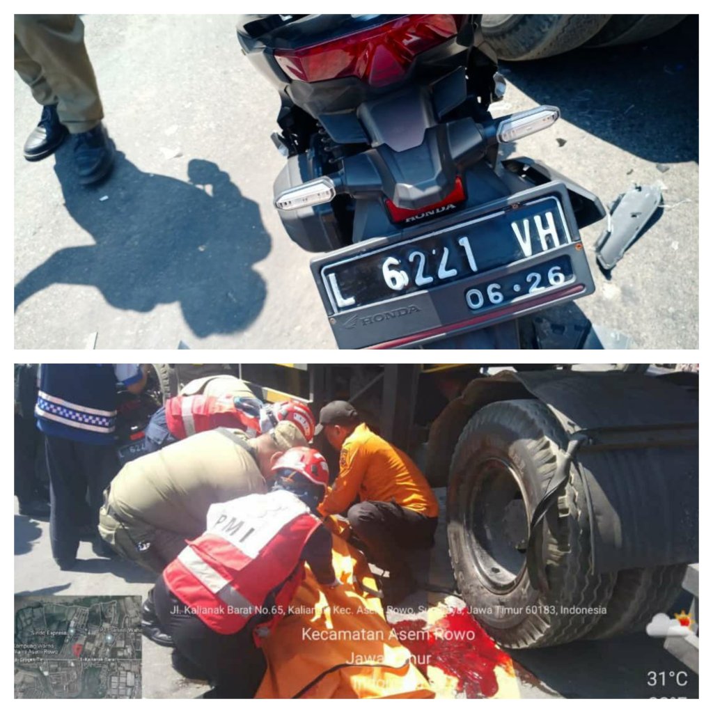 Surabaya,Surya Mentari – Kecelakaan maut antara pemotor melawan truk trailer terjadi di jalan Greges Citra Blok C No.8 Asemrowo Surabaya, Kalianak, Surabaya Barat pada Senin, (17/07/2023) akibat pemotor tewas seketika di lokasi kejadian.