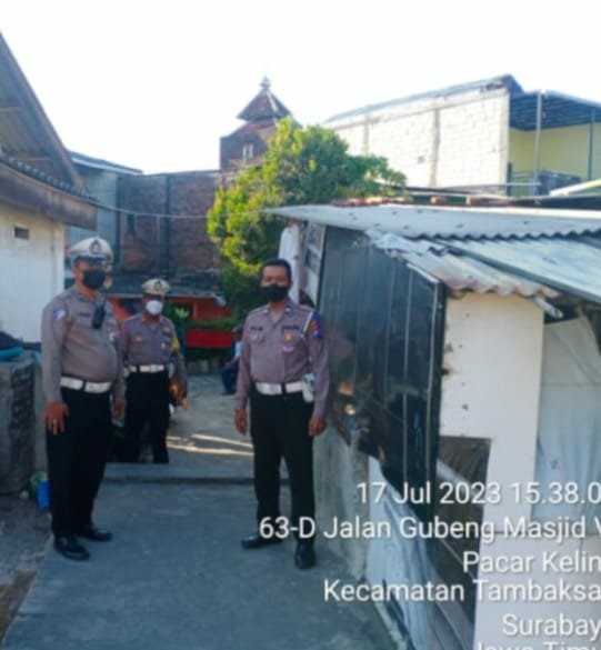 Polsek Tambaksari bersama 3 Pilar melakukan Patroli Rutin Antisipasi Perjudian burung merpati di Jl. Gubeng Masjid Surabaya, Senin (17/07/2023).,