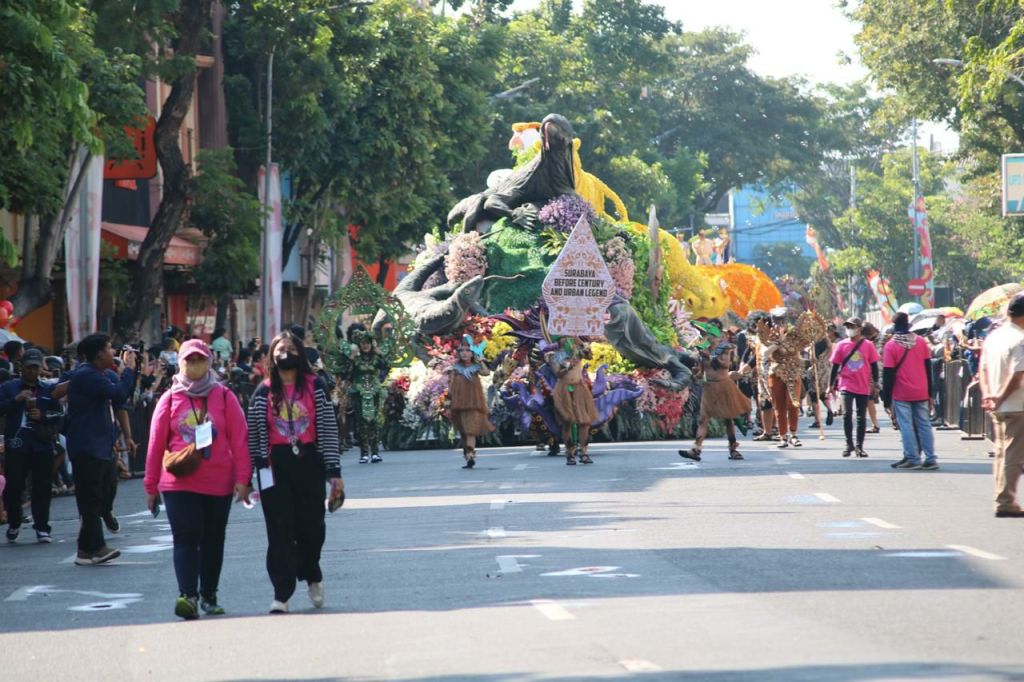“Hari ini tema ‘Surabaya Vaganza’ adalah ‘The Chronicle of Surabaya’ atau perjalanan Surabaya dari masa ke masa. Karenanya, warga Surabaya harus ingat bagaimana Surabaya berdiri saat zaman kerajaan, kolonial, hingga saat ini,” kata Wali Kota Eri.